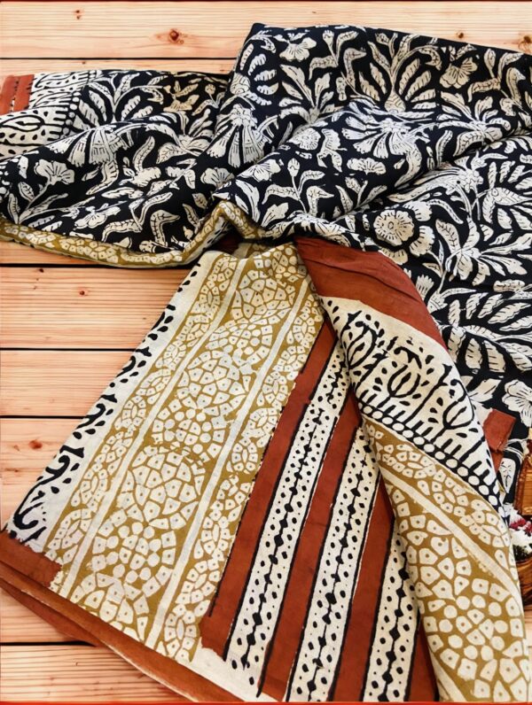 Shine in our Mulcotton Bagru saree—where timeless handblock craft meets airy, soft comfort for effortless daily style