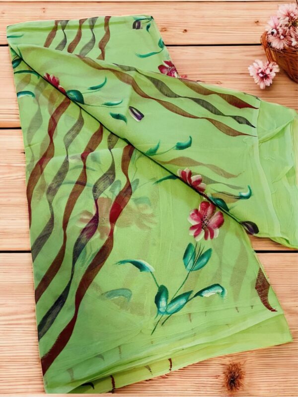 Pure Chiffon Hand Painted Saree- Green
