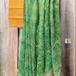 Discover the exquisite artistry of the Tyohar Collection Green Chiffon Gotta Patti Bandhej saree, a masterpiece that celebrates the fusion of traditional Rajasthani bandhej tie-dye technique with luxurious golden gotta patti handwork. Crafted from feather-light chiffon fabric, this stunning piece offers effortless draping and all-day comfort while showcasing intricate hand-tied bandhani patterns adorned with shimmering gold gotta embellishments. The lightweight chiffon ensures breathable elegance perfect for extended celebrations, while the traditional gotta patti work transforms this saree into an artistic treasure. Each golden accent is meticulously handcrafted, creating mesmerizing patterns that catch light beautifully with every movement. Perfect for weddings, festivals, and special occasions where you want to honor heritage craftsmanship while enjoying contemporary comfort, this Tyohar collection piece represents the pinnacle of Indian textile artistry—where timeless tradition meets modern luxury in every fold.”