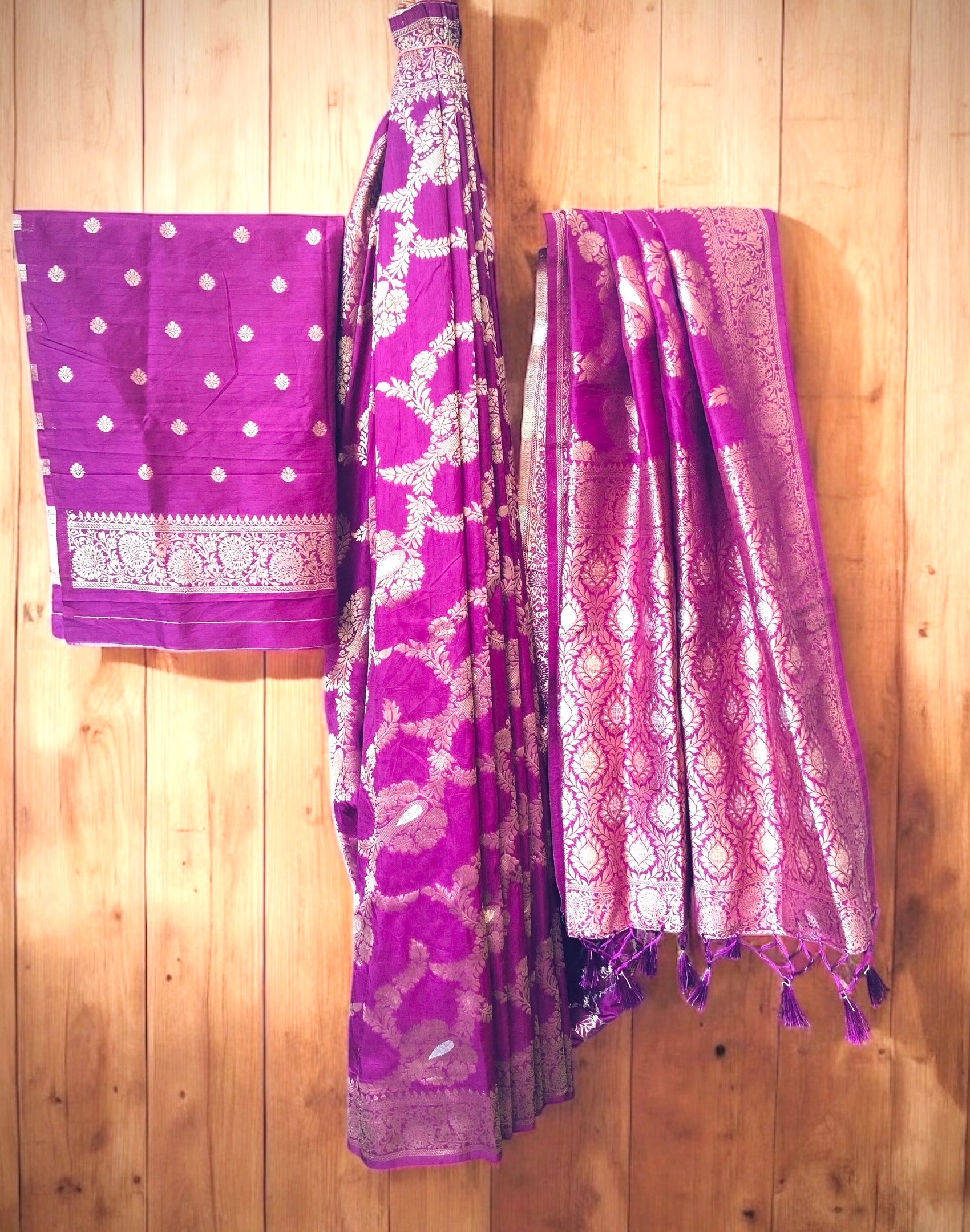 • Low-heat iron on reverse side; avoid perfumes on zari areas.